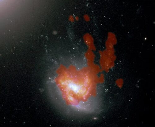 The consequences are profound. Cold gas is a necessary ingredient for star formation. “Once the gas is gone, the galaxy turns red and dead,” Kenney noted. But fallback can briefly revive star formation; in “jellyfish galaxies” like NGC 4858, researchers have observed young stars in the tails of stripped gas. “The fact that you see stars at all [in the stripped tails] is immediately quite surprising,” Souchereau said.